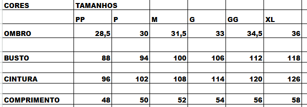 🔹 A modelagem é mais reta e confortável — as medidas de busto, cintura e quadril crescem de forma proporcional.