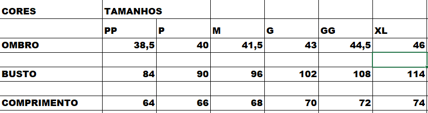 🔹 A modelagem é mais reta e confortável — as medidas de busto, cintura e quadril crescem de forma proporcional.