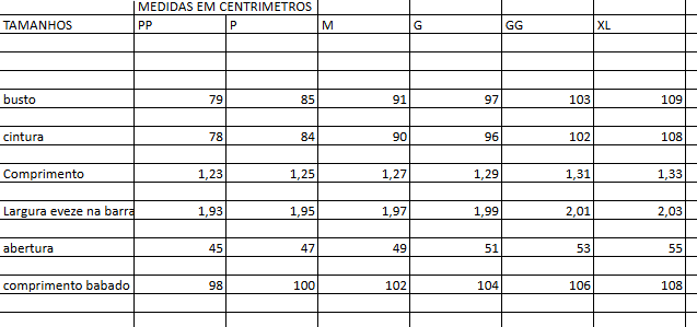 🔹 A modelagem é mais reta e confortável — as medidas de busto, cintura e quadril crescem de forma proporcional.