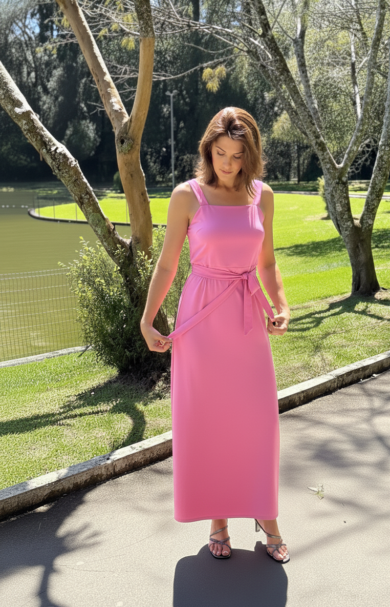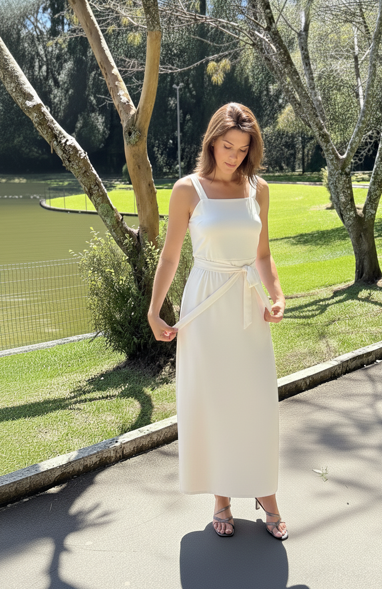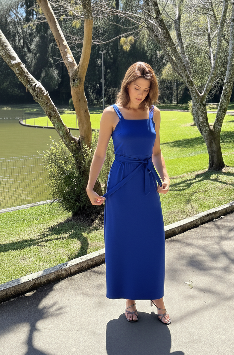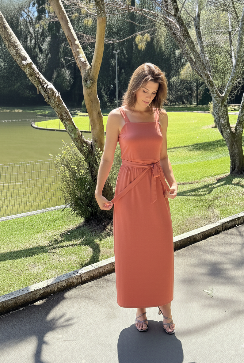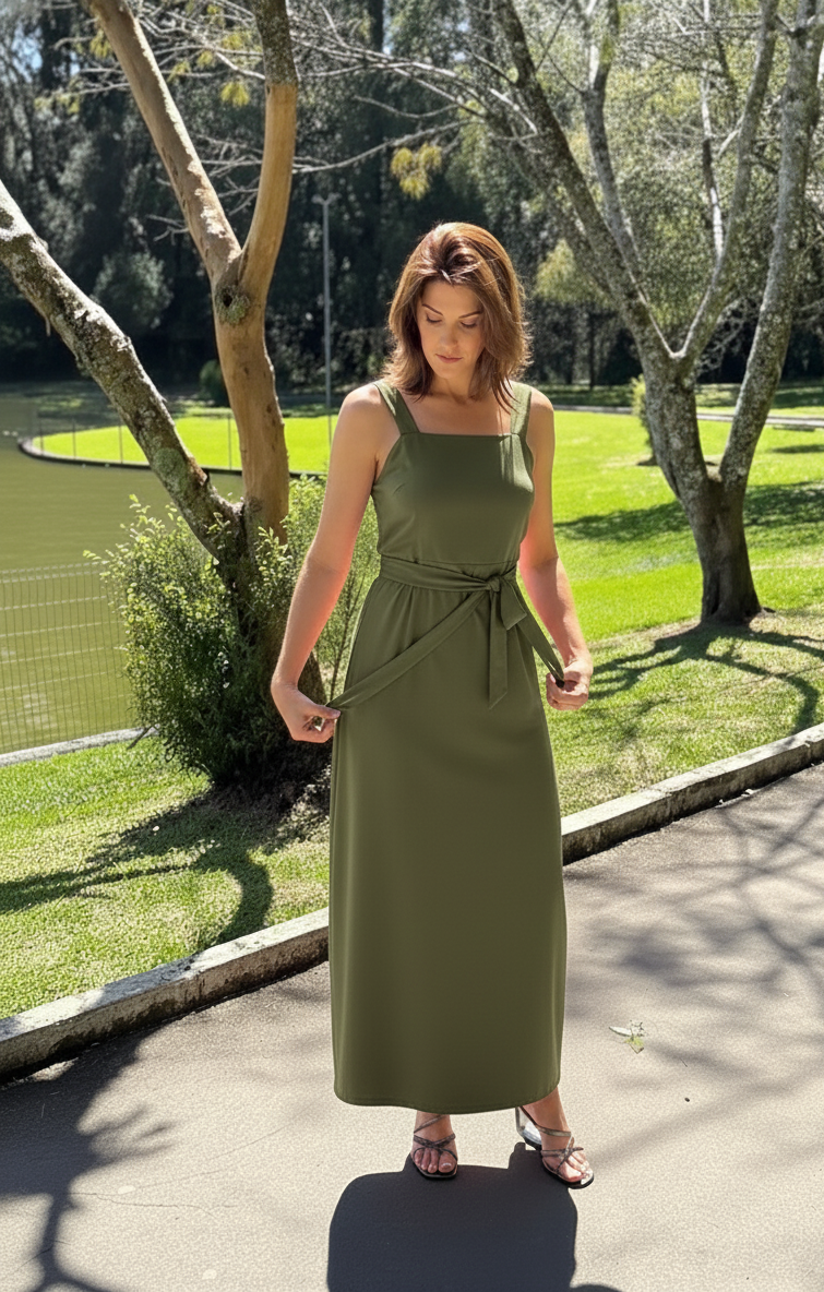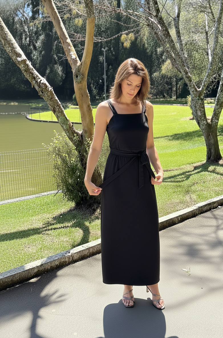 Desperte elegância e leveza com o vestido Boreal Longo e fluido, possui corte evazê que valoriza todos os tipos de corpo. Confeccionado em viscose plana, garante conforto e caimento impecável. Conta com bolsos laterais discretos e um babado longo que permite amarração delicada na cintura, trazendo charme e versatilidade ao look. Ideal para momentos especiais ou para adicionar um toque sofisticado ao dia a dia.